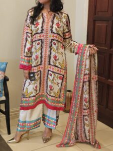 Elevate your wardrobe with this exquisite white silk suit, where timeless elegance meets bold artistry. Crafted from premium silk, the suit features a pristine white base adorned with a vibrant, eye-catching print that adds a burst of color and contemporary charm.
