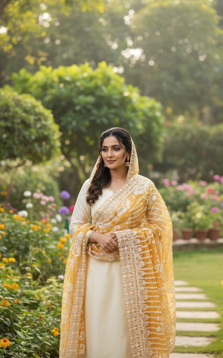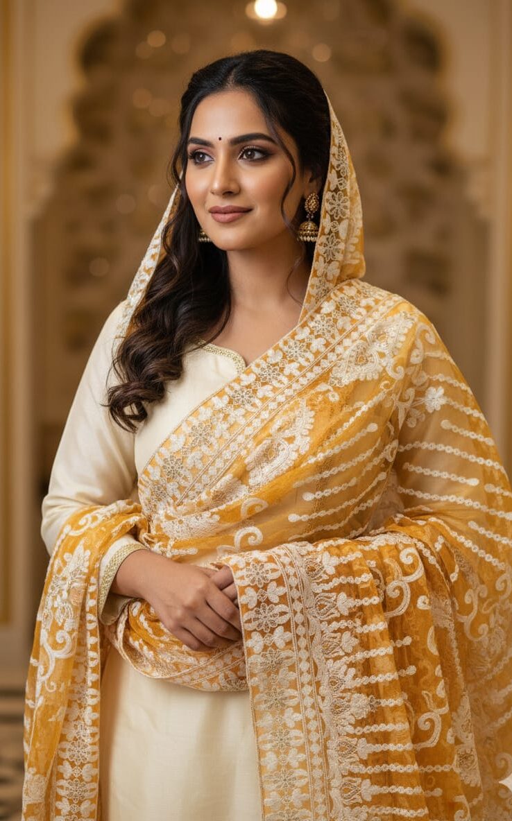 - Fabric: Made from premium soft net, this dupatta offers an incredibly lightweight and ethereal drape. Its sheer quality beautifully complements any simple suit without adding bulk.